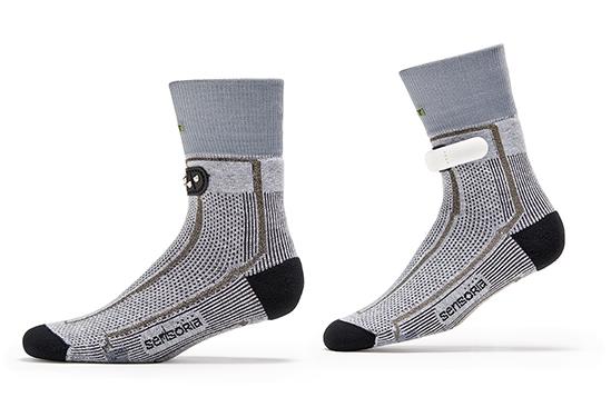 The Sensoria Smart Socks for runners are made from high-tech running friendly fabric, an electronic anklet magnetically attaches to the sock and an app monitors and guides you through real-time audio cues while you run. Working along with your smartphone, it lets you know the speed, altitude, cadence, foot landing and more.